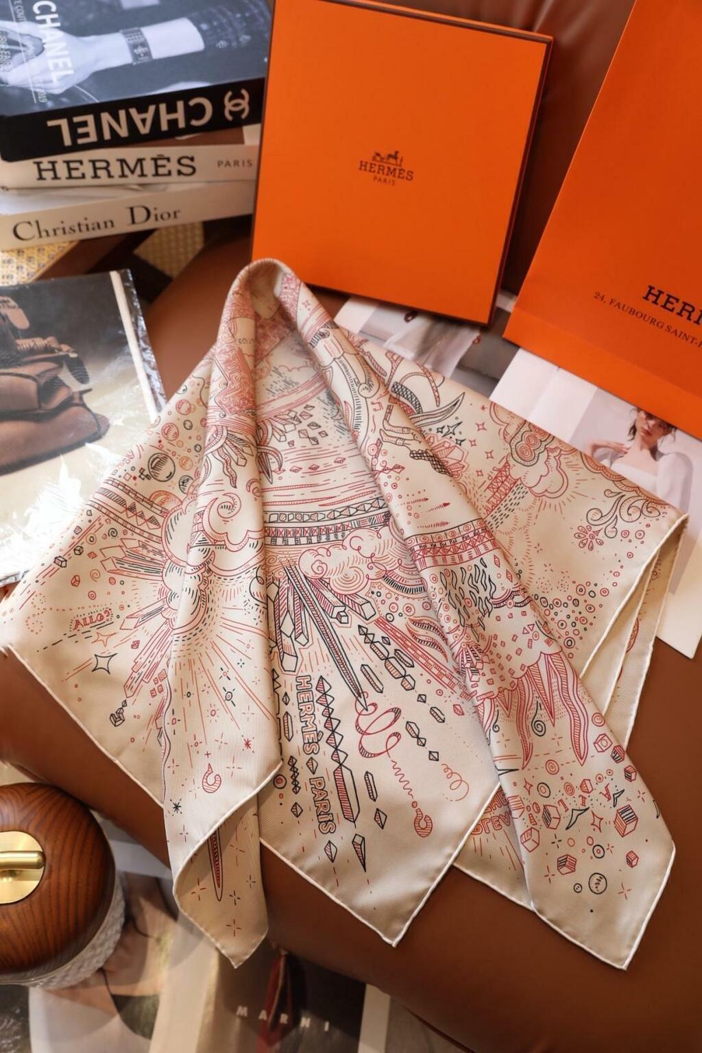 O icônico lenço Carré 90 é uma celebração da liberdade criativa e da elegância atemporal. Confeccionado em sarja de seda 100% pura, esta peça é uma obra de arte.